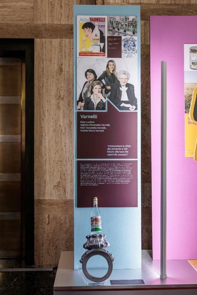 Per Varnelli, una delle installazioni è dedicata alle imprenditrici della famiglia — Elda Luchini, Gigliola Simonetta, Maria Donatella e Orietta Maria — oggi alla guida della prima distilleria delle Marche, fondata nel 1868. La loro attività è raccontata come un esempio di gestione che unisce tradizione, attenzione alle materie prime e continuità, mantenendo un forte legame con il territorio.
