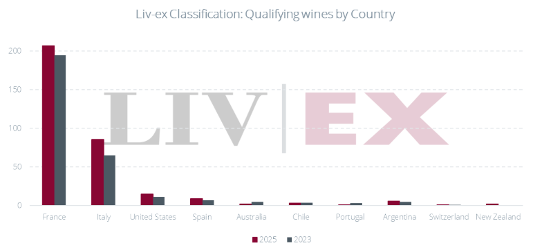 L’Italia consolida il suo ruolo di protagonista sul mercato, conquistando il secondo posto per performance complessiva. Con 86 vini presenti – in significativo aumento rispetto ai 65 dell’edizione 2023 – il Paese conferma una traiettoria di crescita costante, rafforzando il proprio posizionamento internazionale.